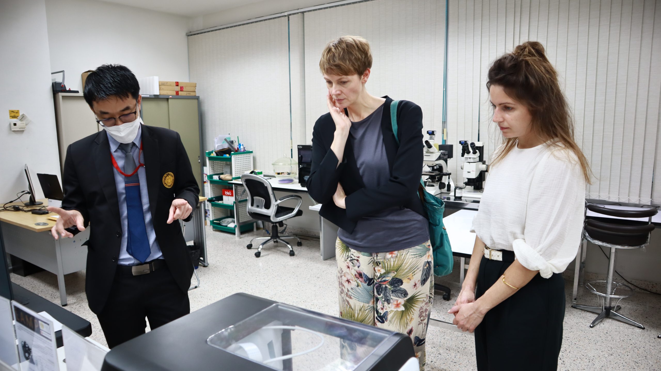 On 6 December 2022, the delegation from DAAD including Ms. Natalie Bursinski, Head of Asia/Pacific Section, German Academic Exchange Service (DAAD), and Mrs. Anna Katharina Rusche, visited King Mongkut’s University of Technology North Bangkok (KMUTNB). At the Thai-German Graduate School of Engineering (TGGS), they visited laboratories and had a meeting with a team of executives, including Prof. Dr. -Ing. Nisai Fuengwarodsakul, Dean of TGGS, Assoc. Prof. Dr. Pichet Sriyangyong, Dean of International College (IC), Assoc. Prof. Dr. Tawiwan Kangsadan, TGGS Associate Dean for Academic Affairs and Quality Management, Asst. Prof. Dr. Peerawatt Nunthavarawong, TGGS Assistant Dean for Research and Industry Relations, Dr. Ampol Likitchatchawankun, TGGS Assistant Dean for International Collaborations and Student Affairs, and Dr. Sarinrat Sabua, Head of TGGS Dean Office. DAAD is the world’s largest funding organization for the international exchange of students and researchers and also the largest German support organization in the field of international academic cooperation, while KMUTNB is a university that has established and gradually developed a long-standing and close cooperation with academic partners in Germany. Therefore, this visit will be a great opportunity to strengthen the cooperation between Thailand and Germany in the area of education.