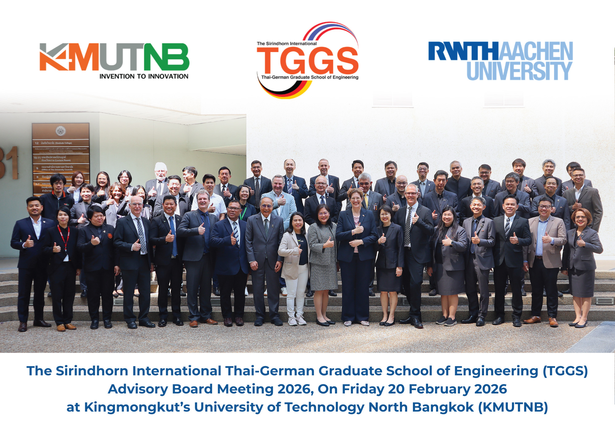 On 20 February 2026, the Thai-German Graduate School of Engineering (TGGS), King Mongkut’s University of Technology North Bangkok (KMUTNB), convened the TGGS Advisory Board Meeting 2026 at the Rajapruek Meeting Room, Navamindra Rajini Building, KMUTNB. The meeting aimed to review institutional progress, exchange perspectives, and receive strategic guidance from distinguished advisory board members.